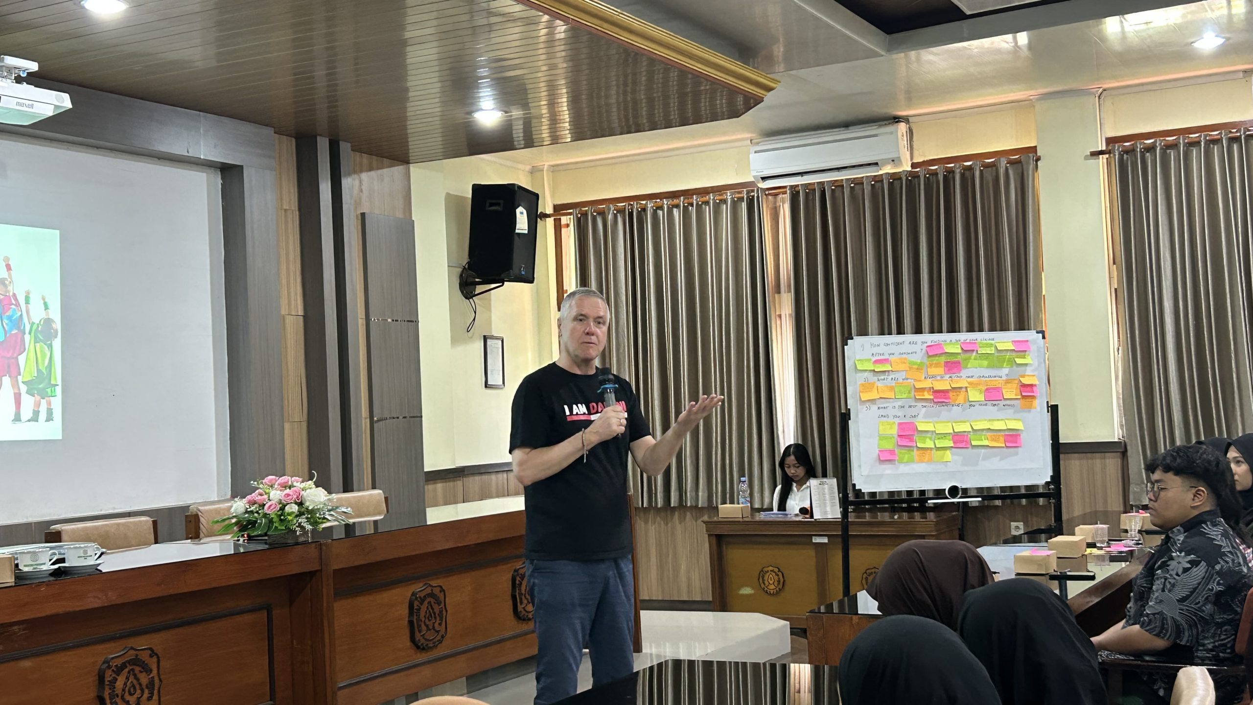 Kegiatan digelar pada Kamis (17/7/2025) di Ruang Sidang 2 Lantai 3, Gedung B Fakultas Pertanian UNS (fp.uns.ac.id) dan diikuti secara hybrid oleh mahasiswa dari berbagai program studi. Workshop ini menghadirkan narasumber utama, Taco Franssen, Co-Founder Dahuni Foundation, yang berbagi wawasan terkait pengembangan karier, personal branding, serta kesiapan menghadapi dunia kerja.